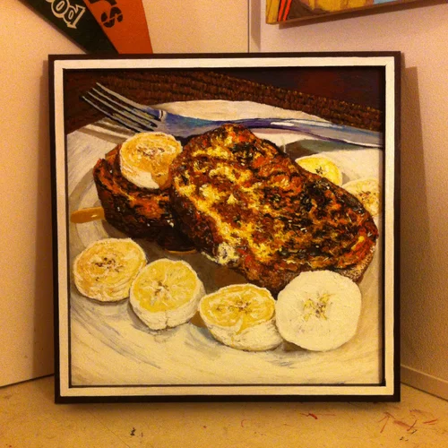 French Toast with Bananas 45cm x 45cm. Oil on wood panel. 2014.
